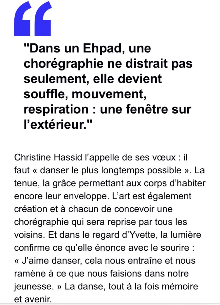 “Dans un Ehpad, une chorégraphie ne distrait pas seulement, elle devient souffle, mouvement, respiration : une fenêtre sur l’extérieur.”